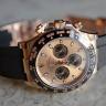 Мужской хронограф от Rolex представляет собой идеальное сочетание гармоничного дизайна и совершенного технического оснащения. Он идеально подойдет уверенным в себе людям с высоким социальным статусом, которые хотят подчеркнуть свою индивидуальность. Модель поставляется в золотом корпусе размером 40 мм. Механизм с автоматическим подзаводом работает от амплитуды движения руки. Часы предназначены для того, чтобы в них плавали и имеют водонепроницаемость 100 м. Циферблат закрыт прозрачным антибликовым стеклом из сапфирового хрусталя высокой прочности, благодаря чему обеспечивается максимальная защита от сколов и механических повреждений. Ремешок из каучука с раскладывающейся золотой застежкой превосходно дополняет изысканный образ модели. Хронограф. Калибр 4130. Запас хода до 72 часов. Циферблат розовый.Гарантия и комплектация