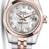 Коллекция Lady-Datejust элегантных женских часов от Rolex поражает своим разнообразием, роскошью и функциональностью. Инкрустация бриллиантами превращает элегантные часы в изысканное украшение. Часы выполнены в корпусе из нержавеющей стали и розового золота размером 26 мм. Толщина корпуса составляет 10 мм. Механизм с автоматическим подзаводом работает от амплитуды движения руки. Часы предназначены для того, чтобы в них плавали и имеют водонепроницаемость 100 м. Циферблат закрыт прозрачным антибликовым стеклом из сапфирового хрусталя высокой прочности, благодаря чему обеспечивается максимальная защита от сколов и механических повреждений. Браслет выполнен из нержавеющей стали и розового золота и комплектуется раскладывающейся стальной застежкой. Бриллианты 10 шт. Запас хода до 48 часов. Белый перламутровый циферблат.Гарантия и комплектация