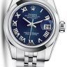 Строгость, элегантность, лаконичность, простота и изысканность форм в сочетании с непревзойденным качеством являются основными характеристиками женских наручных часов компании Rolex. Модель поставляется в стальном корпусе размером 26 мм. Корпус часов толщиной 10 мм. Механизм с автоматическим подзаводом работает от амплитуды движения руки. Часы предназначены для того, чтобы в них плавали и имеют водонепроницаемость 100 м. Циферблат закрыт прозрачным антибликовым стеклом из сапфирового хрусталя высокой прочности, благодаря чему обеспечивается максимальная защита от сколов и механических повреждений. Браслет из нержавеющей стали с раскладывающейся стальной застежкой превосходно дополняет изысканный образ модели. Запас хода до 48 часов. Синий циферблат.Гарантия и комплектация
