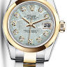 Женские часы серии Lady-Datejust, которые выделяются своей элегантностью, неординарностью и представительностью. Они наделены своим неповторимым характером и имеют собственную харизму. Инкрустация бриллиантами превращает элегантные часы в изысканное украшение. Это лучший выбор для тех, кто хочет подчеркнуть свой высокий статус и неординарность. Модель поставляется в стальном со вставками из желтого золота корпусе размером 26 мм. Корпус часов толщиной 10 мм. Механизм с автоматическим подзаводом работает от амплитуды движения руки. Часы предназначены для того, чтобы в них плавали и имеют водонепроницаемость 100 м. Циферблат закрыт прозрачным антибликовым стеклом из сапфирового хрусталя высокой прочности, благодаря чему обеспечивается максимальная защита от сколов и механических повреждений. Часы укомплектованы стальным браслетом с раскладывающейся застежкой стальной, превосходно дополняющим эксклюзивный образ модели. Бриллианты. Запас хода до 48 часов.Гарантия и комплектация