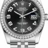 Удобные и, в то же время, стильные часы для женщин. Популярность классических решений в часовой индустрии обусловлена универсальностью линии Datejust от Rolex, простотой и представительностью данного стиля. Инкрустация бриллиантами превращает элегантные часы в изысканное украшение. Часы произведены в стальном со вставками из белого золота корпусе размером 31 мм. Механизм с автоматическим подзаводом работает от амплитуды движения руки. Часы предназначены для того, чтобы в них плавали и имеют водонепроницаемость 100 м. Циферблат закрыт прозрачным антибликовым стеклом из сапфирового хрусталя высокой прочности, благодаря чему обеспечивается максимальная защита от сколов и механических повреждений. Браслет из нержавеющей стали с раскладывающейся стальной застежкой превосходно дополняет изысканный образ модели. Бриллианты. Калибр 3135. Запас хода до 48 часов. Циферблат черный.Гарантия и комплектация