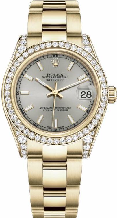 Модель женских наручных часов компании Rolex является эталоном эстетического совершенства и высоких стандартов. Инкрустация бриллиантами превращает элегантные часы в изысканное украшение. Классическое решение в дизайне выгодно подчеркивает силу, уверенность и отменный вкус их обладателя. Изготовленный из желтого золота 18 карат корпус часов, имеет размер 31 мм. Механизм с автоматическим подзаводом работает от амплитуды движения руки. Часы предназначены для того, чтобы в них плавали и имеют водонепроницаемость 100 м. Циферблат закрыт прозрачным антибликовым стеклом из сапфирового хрусталя высокой прочности, благодаря чему обеспечивается максимальная защита от сколов и механических повреждений. Модель поставляется на золотом браслете с раскладывающейся золотой застежкой. Бриллианты. Калибр 2235. Запас хода до 48 часов. Циферблат серебристый.Гарантия и комплектация