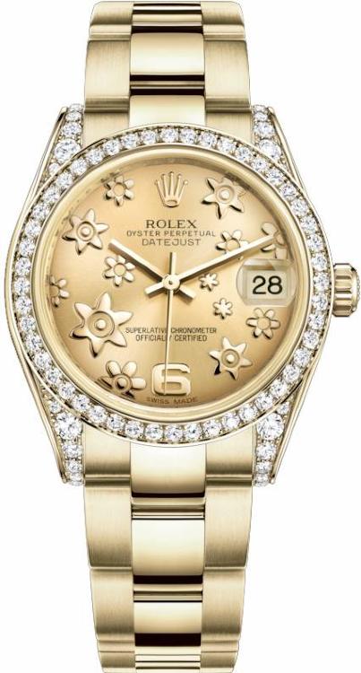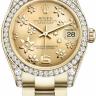 Часы классического дизайна от Rolex для стильных женщин. Индивидуальность данной модели определяет статус своего обладателя и часы становятся неотъемлемой составляющей образа современного человека. Инкрустация бриллиантами превращает элегантные часы в изысканное украшение. Это лучший выбор для тех, кто хочет подчеркнуть свой высокий статус и неординарность. Изготовленный из желтого золота 18 карат корпус часов, имеет размер 31 мм. Механизм с автоматическим подзаводом работает от амплитуды движения руки. Часы предназначены для того, чтобы в них плавали и имеют водонепроницаемость 100 м. Циферблат закрыт прозрачным антибликовым стеклом из сапфирового хрусталя высокой прочности, благодаря чему обеспечивается максимальная защита от сколов и механических повреждений. Модель поставляется на золотом браслете с раскладывающейся золотой застежкой. Бриллианты. Калибр 2235. Запас хода до 48 часов. Циферблат цвета шампанского.Гарантия и комплектация