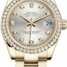 Строгость, элегантность, лаконичность, простота и изысканность форм в сочетании с непревзойденным качеством являются основными характеристиками женских наручных часов компании Rolex. Инкрустация бриллиантами превращает элегантные часы в изысканное украшение. Корпус часов изготовлен из желтого золота 18 карат и имеет размер 31 мм. Механизм с автоматическим подзаводом работает от амплитуды движения руки. Часы предназначены для того, чтобы в них плавали и имеют водонепроницаемость 100 м. Циферблат закрыт прозрачным антибликовым стеклом из сапфирового хрусталя высокой прочности, благодаря чему обеспечивается максимальная защита от сколов и механических повреждений. Модель поставляется на золотом браслете с раскладывающейся золотой застежкой. Бриллианты. Калибр 2235. Запас хода до 48 часов. Циферблат серебристый.Гарантия и комплектация