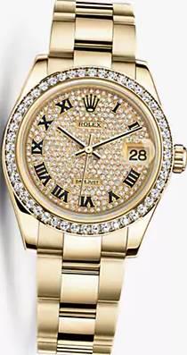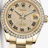 Модель женских наручных часов компании Rolex является эталоном эстетического совершенства и высоких стандартов. Инкрустация бриллиантами превращает элегантные часы в изысканное украшение. Классическое решение в дизайне выгодно подчеркивает силу, уверенность и отменный вкус их обладателя. Изготовленный из желтого золота 18 карат корпус часов, имеет размер 31 мм. Механизм с автоматическим подзаводом работает от амплитуды движения руки. Часы предназначены для того, чтобы в них плавали и имеют водонепроницаемость 100 м. Циферблат закрыт прозрачным антибликовым стеклом из сапфирового хрусталя высокой прочности, благодаря чему обеспечивается максимальная защита от сколов и механических повреждений. Браслет из желтого золота с раскладывающейся золотой застежкой превосходно дополняет изысканный образ модели. Бриллианты. Калибр 2235. Запас хода до 48 часов. Циферблат алмаз-проложили.Гарантия и комплектация