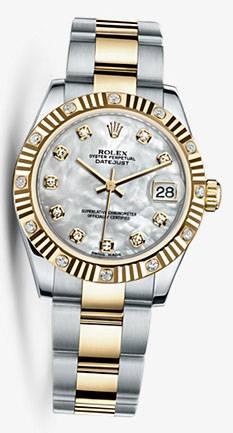 Уникальные, потрясающие женские часы от Rolex коллекции Datejust станут настоящим подарком для истинных поклонников классики и традиций, которые прошли сквозь десятилетия. Инкрустация бриллиантами превращает элегантные часы в изысканное украшение и они гармонично дополнят образ своего обладателя и подчеркнут его индивидуальность и изысканный вкус. Модель поставляется в стальном со вставками из желтого золота корпусе размером 31 мм. Механизм с автоматическим подзаводом работает от амплитуды движения руки. Часы предназначены для того, чтобы в них плавали и имеют водонепроницаемость 100 м. Циферблат закрыт прозрачным антибликовым стеклом из сапфирового хрусталя высокой прочности, благодаря чему обеспечивается максимальная защита от сколов и механических повреждений. Браслет, изготовленный из нержавеющей стали и желтого золота с раскладывающейся застежкой из стали, выполнен в строгом стиле и воплощает элегантность. Бриллианты 22 шт. Калибр 2235. Запас хода до 48 часов. Циферблат белый перламутровый.Гарантия и комплектация