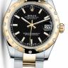 Модель идеально подходит для женщин, которые ценят свой неповторимый стиль и являются поклонниками эксклюзивных вещей. Никто не останется равнодушным при виде часов из коллекции Datejust от мирового производителя часов Rolex, каждая деталь которых поражает своим качеством. Инкрустация бриллиантами превращает элегантные часы в изысканное украшение Изготовленный из нержавеющей стали и желтого золота корпус часов, имеет размер 31 мм. Механизм с автоматическим подзаводом работает от амплитуды движения руки. Часы предназначены для того, чтобы в них плавали и имеют водонепроницаемость 100 м. Циферблат закрыт прозрачным антибликовым стеклом из сапфирового хрусталя высокой прочности, благодаря чему обеспечивается максимальная защита от сколов и механических повреждений. Браслет из нержавеющей стали и желтого золота с раскладывающейся стальной застежкой превосходно дополняет изысканный образ модели. Бриллианты. Калибр 2235. Запас хода до 48 часов. Циферблат черный.Гарантия и комплектация