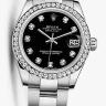 Классика на все времена - женские часы, сдержанные и элегантные по дизайну, разработаны компанией Rolex и адресованы истинным ценителям часового искусства. Модель является образцом представительности, элегантности и неповторимого изысканного стиля. Инкрустация бриллиантами превращает элегантные часы в изысканное украшение. Корпус часов изготовлен из нержавеющей стали и белого золота и имеет размер 31 мм. Механизм с автоматическим подзаводом работает от амплитуды движения руки. Часы предназначены для того, чтобы в них плавали и имеют водонепроницаемость 100 м. Циферблат закрыт прозрачным антибликовым стеклом из сапфирового хрусталя высокой прочности, благодаря чему обеспечивается максимальная защита от сколов и механических повреждений. Браслет из нержавеющей стали с раскладывающейся стальной застежкой превосходно дополняет изысканный образ модели. Бриллианты. Калибр 2235. Запас хода до 48 часов. Циферблат черный.Гарантия и комплектация