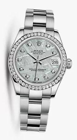 Женские часы серии Datejust представляют собой композицию, объединившую в себе современный смелый дизайн, идеально гармонирующий с лучшими традициями мануфактуры Rolex. Инкрустация бриллиантами превращает элегантные часы в изысканное украшение. Изготовленный из нержавеющей стали и белого золота корпус часов, имеет размер 31 мм. Механизм с автоматическим подзаводом работает от амплитуды движения руки. Часы предназначены для того, чтобы в них плавали и имеют водонепроницаемость 100 м. Циферблат закрыт прозрачным антибликовым стеклом из сапфирового хрусталя высокой прочности, благодаря чему обеспечивается максимальная защита от сколов и механических повреждений. Браслет из нержавеющей стали с раскладывающейся стальной застежкой превосходно дополняет изысканный образ модели. Бриллианты. Калибр 2235. Запас хода до 48 часов. Циферблат метеорит.Гарантия и комплектация