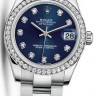Роскошные классические женские часы подчеркнут как строгий деловой стиль, так и высокий статус своего владельца. Эта модель является аксессуаром, в дизайне и механизме которого соблюдены все современные тенденции часового дела. Инкрустация бриллиантами превращает элегантные часы в изысканное украшение. Модель поставляется в стальном со вставками из белого золота корпусе размером 31 мм. Механизм с автоматическим подзаводом работает от амплитуды движения руки. Часы предназначены для того, чтобы в них плавали и имеют водонепроницаемость 100 м. Циферблат закрыт прозрачным антибликовым стеклом из сапфирового хрусталя высокой прочности, благодаря чему обеспечивается максимальная защита от сколов и механических повреждений. Браслет из нержавеющей стали с раскладывающейся стальной застежкой превосходно дополняет изысканный образ модели. Бриллианты. Калибр 2235. Запас хода до 48 часов. Циферблат синий.Гарантия и комплектация