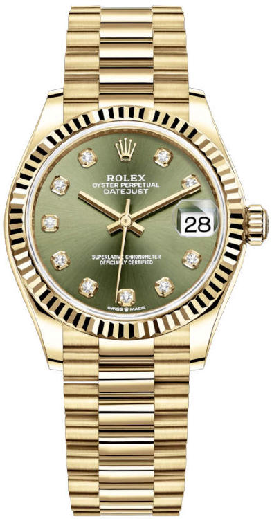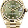 Изысканные женские часы от Rolex являются образцами классического стиля. Завершенные линии, гармоничное сочетание мельчайших деталей, высококачественные материалы и ярко выраженная индивидуальность каждой модели привлекают истинных поклонников имиджевых аксессуаров. Корпус часов изготовлен из желтого золота 18 карат и имеет размер 31 мм. Механизм с автоматическим подзаводом работает от амплитуды движения руки. Часы предназначены для того, чтобы в них плавали и имеют водонепроницаемость 100 м. Циферблат закрыт прозрачным антибликовым стеклом из сапфирового хрусталя высокой прочности, благодаря чему обеспечивается максимальная защита от сколов и механических повреждений. Браслет выполнен из желтого золота и комплектуется раскладывающейся золотой застежкой. 10 бриллиантов на циферблате. Калибр 2236. Запас хода до 55 часов. Циферблат оливковый зеленый.Гарантия и комплектация