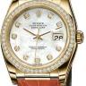 В дизайне и механизме женских часов от Rolex модельного ряда соблюдены все современные тенденции часового дела. Инкрустация бриллиантами превращает элегантные часы в изысканное украшение. Эта удивительная смесь порождает новый стиль часов, основанный на вековых традициях, получивших современную интерпретацию. Модель поставляется в золотом корпусе размером 36 мм. Механизм с автоматическим подзаводом работает от амплитуды движения руки. Часы предназначены для того, чтобы в них плавали и имеют водонепроницаемость 100 м. Циферблат закрыт прозрачным антибликовым стеклом из сапфирового хрусталя высокой прочности, благодаря чему обеспечивается максимальная защита от сколов и механических повреждений. Модель поставляется на кожаном ремешке с раскладывающейся золотой застежкой. Бриллианты 60 шт. Запас хода до 48 часов.Гарантия и комплектация
