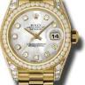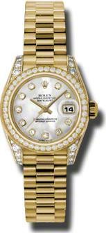 Модель женских наручных часов компании Rolex является эталоном эстетического совершенства и высоких стандартов. Инкрустация бриллиантами превращает элегантные часы в изысканное украшение. Классическое решение в дизайне выгодно подчеркивает силу, уверенность и отменный вкус их обладателя. Модель поставляется в золотом корпусе размером 26 мм. Корпус часов толщиной 10 мм. Механизм с автоматическим подзаводом работает от амплитуды движения руки. Часы предназначены для того, чтобы в них плавали и имеют водонепроницаемость 100 м. Циферблат закрыт прозрачным антибликовым стеклом из сапфирового хрусталя высокой прочности, благодаря чему обеспечивается максимальная защита от сколов и механических повреждений. Браслет, изготовленный из желтого золота с раскладывающейся застежкой из золота, выполнен в строгом стиле и воплощает элегантность. Бриллианты 76 шт. Запас хода до 42 часов.Гарантия и комплектация