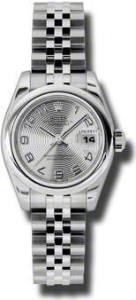 В дизайне и механизме женских часов от Rolex модельного ряда соблюдены все современные тенденции часового дела. Эта удивительная смесь порождает новый стиль часов, основанный на вековых традициях, получивших современную интерпретацию. Изготовленный из нержавеющей стали корпус часов, имеет размер 26 мм. Корпус часов толщиной 10 мм. Механизм с автоматическим подзаводом работает от амплитуды движения руки. Часы предназначены для того, чтобы в них плавали и имеют водонепроницаемость 100 м. Циферблат закрыт прозрачным антибликовым стеклом из сапфирового хрусталя высокой прочности, благодаря чему обеспечивается максимальная защита от сколов и механических повреждений. Браслет, изготовленный из нержавеющей стали с раскладывающейся застежкой из стали, выполнен в строгом стиле и воплощает элегантность. Запас хода до 42 часов.Гарантия и комплектация