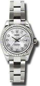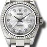 Женские часы серии представляют собой композицию, объединившую в себе современный смелый дизайн, идеально гармонирующий с лучшими традициями мануфактуры Rolex. Инкрустация бриллиантами превращает элегантные часы в изысканное украшение. Изготовленный из белого золота 18 карат корпус часов, имеет размер 26 мм. Корпус часов толщиной 10 мм. Механизм с автоматическим подзаводом работает от амплитуды движения руки. Часы предназначены для того, чтобы в них плавали и имеют водонепроницаемость 100 м. Циферблат закрыт прозрачным антибликовым стеклом из сапфирового хрусталя высокой прочности, благодаря чему обеспечивается максимальная защита от сколов и механических повреждений. Браслет из белого золота с раскладывающейся золотой застежкой превосходно дополняет изысканный образ модели. Бриллианты. Запас хода до 42 часов.Гарантия и комплектация