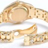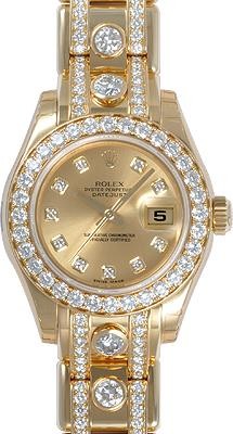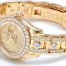 В дизайне и механизме женских часов от Rolex модельного ряда соблюдены все современные тенденции часового дела. Инкрустация бриллиантами превращает элегантные часы в изысканное украшение. Эта удивительная смесь порождает новый стиль часов, основанный на вековых традициях, получивших современную интерпретацию. Изготовленный из желтого золота 18 карат корпус часов, имеет размер 29 мм. Корпус часов толщиной 10 мм. Механизм с автоматическим подзаводом работает от амплитуды движения руки. Часы предназначены для того, чтобы в них плавали и имеют водонепроницаемость 100 м. Циферблат закрыт прозрачным антибликовым стеклом из сапфирового хрусталя высокой прочности, благодаря чему обеспечивается максимальная защита от сколов и механических повреждений. Модель поставляется на золотом браслете с раскладывающейся золотой застежкой. Бриллианты 206 шт. Запас хода до 42 часов. Браслет, инкрустирован бриллиантамиГарантия и комплектация