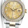 Женские часы серии Datejust представляют собой композицию, объединившую в себе современный смелый дизайн, идеально гармонирующий с лучшими традициями мануфактуры Rolex. Инкрустация бриллиантами превращает элегантные часы в изысканное украшение. Часы выполнены в корпусе из нержавеющей стали и желтого золота размером 36 мм. Толщина корпуса составляет 11 мм. Механизм с автоматическим подзаводом работает от амплитуды движения руки. Часы предназначены для того, чтобы в них плавали и имеют водонепроницаемость 100 м. Циферблат закрыт прозрачным антибликовым стеклом из сапфирового хрусталя высокой прочности, благодаря чему обеспечивается максимальная защита от сколов и механических повреждений. Браслет из нержавеющей стали и желтого золота с раскладывающейся стальной застежкой превосходно дополняет изысканный образ модели. Бриллианты 52 шт. Запас хода до 48 часов. Циферблат цвета шампанского, Jubilee.Гарантия и комплектация