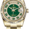Уникальные, потрясающие женские часы от Rolex коллекции Day-Date станут настоящим подарком для истинных поклонников классики и традиций, которые прошли сквозь десятилетия. Они гармонично дополнят образ своего обладателя и подчеркнут его индивидуальность и изысканный вкус. Часы выполнены в корпусе из желтого золота 18 карат размером 36 мм. Механизм с автоматическим подзаводом работает от амплитуды движения руки. Часы предназначены для того, чтобы в них плавали и имеют водонепроницаемость 100 м. Циферблат закрыт прозрачным антибликовым стеклом из сапфирового хрусталя высокой прочности, благодаря чему обеспечивается максимальная защита от сколов и механических повреждений. Браслет, изготовленный из желтого золота с раскладывающейся застежкой из золота, выполнен в строгом стиле и воплощает элегантность. Бриллианты на циферблате. Калибр 3155. Запас хода до 48 часов. Зеленый циферблат частично выложен бриллиантами.Гарантия и комплектация