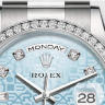 | Дополнение | 2 багетных и 58 простых бриллиантов. Калибр 3155. Запас хода до 48 часов. Циферблат голубой лед юбилейный дизайн. |