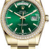 Элегантные классические женские часы с бриллиантами от Rolex представляют собой идеальное сочетание гармоничного дизайна и совершенного технического оснащения. Они идеально подойдут уверенным в себе людям с высоким социальным статусом, которые хотят подчеркнуть свою индивидуальность и изысканный вкус. Изготовленный из желтого золота 18 карат корпус часов, имеет размер 36 мм. Механизм с автоматическим подзаводом работает от амплитуды движения руки. Часы предназначены для того, чтобы в них плавали и имеют водонепроницаемость 100 м. Циферблат закрыт прозрачным антибликовым стеклом из сапфирового хрусталя высокой прочности, благодаря чему обеспечивается максимальная защита от сколов и механических повреждений. Модель поставляется на золотом браслете с раскладывающейся золотой застежкой. 52 бриллианта. Калибр 3155. Запас хода до 48 часов. Циферблат зеленый.Гарантия и комплектация