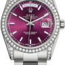 Модель идеально подходит для женщин, которые ценят свой неповторимый стиль и являются поклонниками эксклюзивных вещей. Никто не останется равнодушным при виде часов из коллекции Day-Date от мирового производителя часов Rolex, каждая деталь которых поражает своим качеством. Инкрустация бриллиантами превращает элегантные часы в изысканное украшение Изготовленный из белого золота 18 карат корпус часов, имеет размер 36 мм. Механизм с автоматическим подзаводом работает от амплитуды движения руки. Часы предназначены для того, чтобы в них плавали и имеют водонепроницаемость 100 м. Циферблат закрыт прозрачным антибликовым стеклом из сапфирового хрусталя высокой прочности, благодаря чему обеспечивается максимальная защита от сколов и механических повреждений. Браслет выполнен из белого золота и комплектуется раскладывающейся золотой застежкой. Бриллианты на корпусе. Калибр 3155. Запас хода до 48 часов. Циферблат вишневый.Гарантия и комплектация