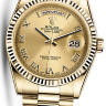 Уникальные, потрясающие часы от Rolex коллекции Day-Date станут настоящим подарком для истинных поклонников классики и традиций, которые прошли сквозь десятилетия. Они гармонично дополнят образ своего обладателя и подчеркнут его индивидуальность и изысканный вкус. Изготовленный из желтого золота 18 карат корпус часов, имеет размер 36 мм. Корпус часов толщиной 11 мм. Механизм с автоматическим подзаводом работает от амплитуды движения руки. Часы предназначены для того, чтобы в них плавали и имеют водонепроницаемость 100 м. Циферблат закрыт прозрачным антибликовым стеклом из сапфирового хрусталя высокой прочности, благодаря чему обеспечивается максимальная защита от сколов и механических повреждений. Браслет выполнен из желтого золота и комплектуется раскладывающейся золотой застежкой. Запас хода до 48 часов.Гарантия и комплектация