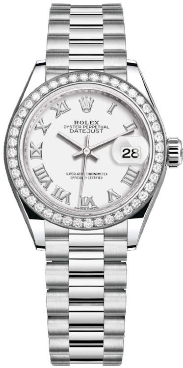 Изысканные женские часы, украшенные роскошными бриллиантами, от Rolex являются образцами классического стиля. Завершенные линии, гармоничное сочетание мельчайших деталей, высококачественные материалы и ярко выраженная индивидуальность каждой модели привлекают истинных поклонников имиджевых аксессуаров. Изготовленный из платины корпус часов, имеет размер 28 мм. Механизм с автоматическим подзаводом работает от амплитуды движения руки. Часы предназначены для того, чтобы в них плавали и имеют водонепроницаемость 100 м. Циферблат закрыт прозрачным антибликовым стеклом из сапфирового хрусталя высокой прочности, благодаря чему обеспечивается максимальная защита от сколов и механических повреждений. Браслет выполнен из платины и комплектуется раскладывающейся платиновой застежкой. Безель с бриллиантами. Калибр 2236. Запас хода до 55 часов. Циферблат белый.Гарантия и комплектация