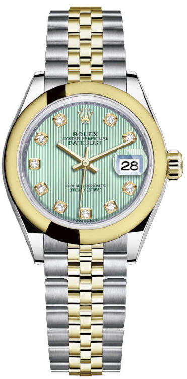 Элегантная классика из модельного ряда Datejust от Rolex для женщин. Часы в превосходном исполнении идеально сочетают в себе гармонично созданный дизайн и передовые часовые технологии. Модель поставляется в стальном со вставками из желтого золота корпусе размером 28 мм. Механизм с автоматическим подзаводом работает от амплитуды движения руки. Часы предназначены для того, чтобы в них плавали и имеют водонепроницаемость 100 м. Циферблат закрыт прозрачным антибликовым стеклом из сапфирового хрусталя высокой прочности, благодаря чему обеспечивается максимальная защита от сколов и механических повреждений. Модель поставляется на стальном браслете с застежкой. 10 бриллиантов. Калибр 2236. Запас хода до 55 часов. Циферблат зеленый.Гарантия и комплектация