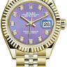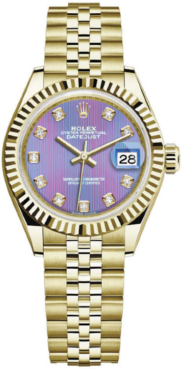 Использование высокотехнологичной механики и совершенных форм является неотъемлемым атрибутом легендарной серии Datejust от Rolex. Эти женские часы идеально подойдут уверенным в себе людям с высоким социальным статусом. Часы выполнены в корпусе из желтого золота 18 карат размером 28 мм. Механизм с автоматическим подзаводом работает от амплитуды движения руки. Часы предназначены для того, чтобы в них плавали и имеют водонепроницаемость 100 м. Циферблат закрыт прозрачным антибликовым стеклом из сапфирового хрусталя высокой прочности, благодаря чему обеспечивается максимальная защита от сколов и механических повреждений. Браслет из желтого золота с раскладывающейся золотой застежкой превосходно дополняет изысканный образ модели. 10 бриллиантов. Калибр 2236. Запас хода до 55 часов. Циферблат с тонкими фиолетовыми и розовыми полосками.Гарантия и комплектация