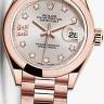 Строгость, элегантность, лаконичность, простота и изысканность форм в сочетании с непревзойденным качеством являются основными характеристиками женских наручных часов компании Rolex. Инкрустация бриллиантами превращает элегантные часы в изысканное украшение. Часы выполнены в корпусе из розового золота 18 карат размером 28 мм. Механизм с автоматическим подзаводом работает от амплитуды движения руки. Часы предназначены для того, чтобы в них плавали и имеют водонепроницаемость 100 м. Циферблат закрыт прозрачным антибликовым стеклом из сапфирового хрусталя высокой прочности, благодаря чему обеспечивается максимальная защита от сколов и механических повреждений. Часы укомплектованы золотым браслетом с раскладывающейся застежкой из золота, превосходно дополняющим эксклюзивный образ модели. Бриллианты. Калибр 2236. Запас хода до 55 часов. Циферблат белый.Гарантия и комплектация