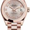 Удобные и, в то же время, стильные часы для женщин. Популярность классических решений в часовой индустрии обусловлена универсальностью линии Datejust от Rolex, простотой и представительностью данного стиля. Корпус часов изготовлен из розового золота 18 карат и имеет размер 28 мм. Механизм с автоматическим подзаводом работает от амплитуды движения руки. Часы предназначены для того, чтобы в них плавали и имеют водонепроницаемость 100 м. Циферблат закрыт прозрачным антибликовым стеклом из сапфирового хрусталя высокой прочности, благодаря чему обеспечивается максимальная защита от сколов и механических повреждений. Браслет, изготовленный из розового золота с раскладывающейся застежкой из золота, выполнен в строгом стиле и воплощает элегантность. Калибр 2236. Запас хода до 55 часов. Циферблат серебристый.Гарантия и комплектация