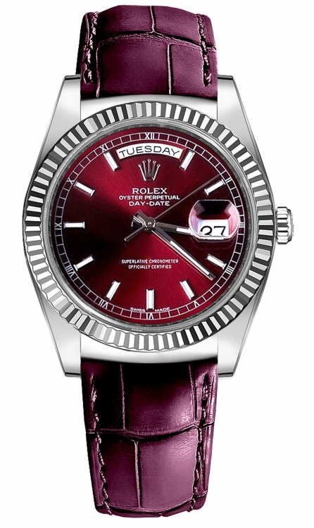 Элегантные классические женские часы от Rolex представляют собой идеальное сочетание гармоничного дизайна и совершенного технического оснащения. Они идеально подойдут уверенным в себе людям с высоким социальным статусом, которые хотят подчеркнуть свою индивидуальность и изысканный вкус. Часы произведены в золотом корпусе размером 36 мм. Механизм с автоматическим подзаводом работает от амплитуды движения руки. Часы предназначены для того, чтобы в них плавали и имеют водонепроницаемость 100 м. Циферблат закрыт прозрачным антибликовым стеклом из сапфирового хрусталя высокой прочности, благодаря чему обеспечивается максимальная защита от сколов и механических повреждений. Ремешок выполнен из кожи аллигатора и комплектуется раскладывающейся золотой застежкой. Калибр 3155. Циферблат вишнёвого цвета. Мгновенно устанавливаемая дата с возможностью быстрой корректировки. Возможность остановки секундной стрелки для выставления точного времени.Гарантия и комплектация