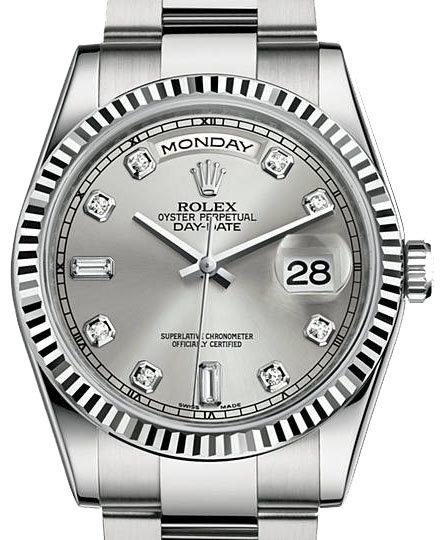 Строгость, элегантность, лаконичность, простота и изысканность форм в сочетании с непревзойденным качеством являются основными характеристиками женских наручных часов компании Rolex. Часы произведены в золотом корпусе размером 36 мм. Механизм с автоматическим подзаводом работает от амплитуды движения руки. Часы предназначены для того, чтобы в них плавали и имеют водонепроницаемость 100 м. Циферблат закрыт прозрачным антибликовым стеклом из сапфирового хрусталя высокой прочности, благодаря чему обеспечивается максимальная защита от сколов и механических повреждений. Модель поставляется на золотом браслете с раскладывающейся золотой застежкой. 8 бриллиантов. Калибр 3155. Циферблат серебристый. Мгновенно устанавливаемые дата и день недели в окошках на циферблате с возможностью быстрой корректировки. Возможность остановки секундной стрелки для выставления точного времени.Гарантия и комплектация