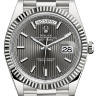 Модель идеально подходит для мужчин, которые ценят свой неповторимый стиль и являются поклонниками эксклюзивных вещей. Никто не останется равнодушным при виде часов из коллекции Day-Date от мирового производителя часов Rolex, каждая деталь которых поражает своим качеством. Модель поставляется в золотом корпусе размером 40 мм. Механизм с автоматическим подзаводом работает от амплитуды движения руки. Часы предназначены для того, чтобы в них плавали и имеют водонепроницаемость 100 м. Циферблат закрыт прозрачным антибликовым стеклом из сапфирового хрусталя высокой прочности, благодаря чему обеспечивается максимальная защита от сколов и механических повреждений. Браслет из белого золота с раскладывающейся золотой застежкой превосходно дополняет изысканный образ модели. Калибр 3255. Циферблат серый, линейчатый мотив. Мгновенно устанавливаемые в окошках дата и день недели с неограниченной возможностью быстрой корректировки. Возможность остановки секундной стрелки для выставления точного времени.Гарантия и комплектация