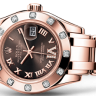 В дизайне и механизме женских часов от Rolex модельного ряда Pearlmaster соблюдены все современные тенденции часового дела. Инкрустация бриллиантами превращает элегантные часы в изысканное украшение. Эта удивительная смесь порождает новый стиль часов, основанный на вековых традициях, получивших современную интерпретацию. Корпус часов изготовлен из розового золота 18 карат и имеет размер 29 мм. Толщина корпуса часов составляет 10 мм. Механизм с автоматическим подзаводом работает от амплитуды движения руки. Часы предназначены для того, чтобы в них плавали и имеют водонепроницаемость 100 м. Циферблат закрыт прозрачным антибликовым стеклом из сапфирового хрусталя высокой прочности, благодаря чему обеспечивается максимальная защита от сколов и механических повреждений. Браслет выполнен из розового золота и комплектуется раскладывающейся золотой застежкой. Бриллианты 12 шт. Крупная цифра VI инкрустирована 11 бриллиантами. Запас хода до 42 часов.Гарантия и комплектация