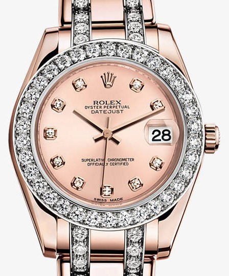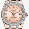 Коллекция Pearlmaster элегантных женских часов от Rolex поражает своим разнообразием, роскошью и функциональностью. Инкрустация бриллиантами превращает элегантные часы в изысканное украшение. Изготовленный из розового золота 18 карат корпус часов, имеет размер 34 мм. Механизм с автоматическим подзаводом работает от амплитуды движения руки. Часы предназначены для того, чтобы в них плавали и имеют водонепроницаемость 100 м. Циферблат закрыт прозрачным антибликовым стеклом из сапфирового хрусталя высокой прочности, благодаря чему обеспечивается максимальная защита от сколов и механических повреждений. Браслет, изготовленный из розового золота с раскладывающейся застежкой золотой, выполнен в строгом стиле и воплощает элегантность. Бриллианты. Калибр 2236. Циферблат розовый, бриллианты. Мгновенно устанавливаемая дата с возможностью быстрой корректировки. Возможность остановки секундной стрелки для выставления точного времени. Браслет округлые пятирядные звенья, бриллианты.Гарантия и комплектация