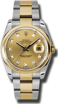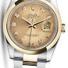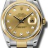 Коллекция Datejust элегантных женских часов от Rolex поражает своим разнообразием, роскошью и функциональностью. Инкрустация бриллиантами превращает элегантные часы в изысканное украшение. Модель поставляется в стальном со вставками из желтого золота корпусе размером 36 мм. Корпус часов толщиной 11 мм. Механизм с автоматическим подзаводом работает от амплитуды движения руки. Часы предназначены для того, чтобы в них плавали и имеют водонепроницаемость 100 м. Циферблат закрыт прозрачным антибликовым стеклом из сапфирового хрусталя высокой прочности, благодаря чему обеспечивается максимальная защита от сколов и механических повреждений. Браслет, изготовленный из нержавеющей стали и желтого золота с раскладывающейся застежкой стальной, выполнен в строгом стиле и воплощает элегантность. Бриллианты 10 шт. Запас хода до 50 часов.Гарантия и комплектация