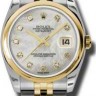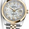 Коллекция Datejust элегантных женских часов от Rolex поражает своим разнообразием, роскошью и функциональностью. Инкрустация бриллиантами превращает элегантные часы в изысканное украшение. Часы произведены в стальном со вставками из желтого золота корпусе размером 36 мм. Толщина часов составляет 11 мм. Механизм с автоматическим подзаводом работает от амплитуды движения руки. Часы предназначены для того, чтобы в них плавали и имеют водонепроницаемость 100 м. Циферблат закрыт прозрачным антибликовым стеклом из сапфирового хрусталя высокой прочности, благодаря чему обеспечивается максимальная защита от сколов и механических повреждений. Браслет, изготовленный из нержавеющей стали и желтого золота с раскладывающейся застежкой стальной, выполнен в строгом стиле и воплощает элегантность. Бриллианты. Запас хода до 50 часов.Гарантия и комплектация