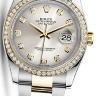 Женские часы серии Datejust, которые выделяются своей элегантностью, неординарностью и представительностью. Они наделены своим неповторимым характером и имеют собственную харизму. Инкрустация бриллиантами превращает элегантные часы в изысканное украшение. Это лучший выбор для тех, кто хочет подчеркнуть свой высокий статус и неординарность. Изготовленный из нержавеющей стали и желтого золота корпус часов, имеет размер 36 мм. Корпус часов толщиной 11 мм. Механизм с автоматическим подзаводом работает от амплитуды движения руки. Часы предназначены для того, чтобы в них плавали и имеют водонепроницаемость 100 м. Циферблат закрыт прозрачным антибликовым стеклом из сапфирового хрусталя высокой прочности, благодаря чему обеспечивается максимальная защита от сколов и механических повреждений. Браслет из нержавеющей стали и желтого золота с раскладывающейся стальной застежкой превосходно дополняет изысканный образ модели. Бриллианты 52 шт. Запас хода до 48 часов.Гарантия и комплектация