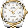Изысканные женские часы, украшенные роскошными бриллиантами, от Rolex являются образцами классического стиля. Завершенные линии, гармоничное сочетание мельчайших деталей, высококачественные материалы и ярко выраженная индивидуальность каждой модели привлекают истинных поклонников имиджевых аксессуаров. Часы произведены в стальном со вставками из желтого золота корпусе размером 36 мм. Толщина часов составляет 11 мм. Механизм с автоматическим подзаводом работает от амплитуды движения руки. Часы предназначены для того, чтобы в них плавали и имеют водонепроницаемость 100 м. Циферблат закрыт прозрачным антибликовым стеклом из сапфирового хрусталя высокой прочности, благодаря чему обеспечивается максимальная защита от сколов и механических повреждений. Браслет, изготовленный из нержавеющей стали и желтого золота с раскладывающейся застежкой стальной, выполнен в строгом стиле и воплощает элегантность. Бриллианты 10 шт. Запас хода до 50 часов.Гарантия и комплектация