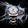 Мужские часы представляют собой композицию, объединившую в себе современный смелый дизайн, идеально гармонирующий с лучшими традициями мануфактуры Rolex. Коллекция элегантных часов поражает своим разнообразием, роскошью и функциональностью. Модель поставляется в стальном со вставками из розового золота корпусе размером 44 мм. Корпус часов толщиной 13 мм. Механизм с автоматическим подзаводом работает от амплитуды движения руки. Часы предназначены для того, чтобы в них плавали и имеют водонепроницаемость 100 м. Циферблат закрыт прозрачным антибликовым стеклом из сапфирового хрусталя высокой прочности, благодаря чему обеспечивается максимальная защита от сколов и механических повреждений. Браслет выполнен из нержавеющей стали и розового золота и комплектуется раскладывающейся стальной застежкой. Хронометр. Запас хода до 50 часов.Гарантия и комплектация