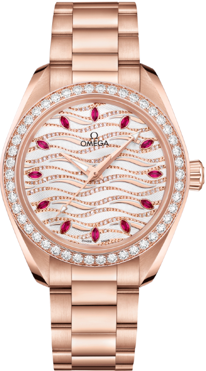 В дизайне и механизме женских часов от Omega модельного ряда Seamaster соблюдены все современные тенденции часового дела. Инкрустация бриллиантами превращает элегантные часы в изысканное украшение. Эта удивительная смесь порождает новый стиль часов, основанный на вековых традициях, получивших современную интерпретацию. Изготовленный из розового золота 18 карат корпус часов, имеет размер 34 мм. Механизм с автоматическим подзаводом работает от амплитуды движения руки. Часы предназначены для того, чтобы в них плавали и имеют водонепроницаемость 150 м. Циферблат закрыт прозрачным антибликовым стеклом из сапфирового хрусталя высокой прочности, благодаря чему обеспечивается максимальная защита от сколов и механических повреждений. Для изготовления задней крышки корпуса часов также применяется сапфировое стекло, благодаря чему обеспечивается обзор на работу часового механизма. Браслет выполнен из розового золота и комплектуется раскладывающейся золотой застежкой. 184 бриллианта, 12 рубинов. Калибр Омега 8807. Запас хода до 55 часов. Прозрачная задняя крышка. Циферблат белый.Гарантия и комплектация