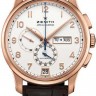 Представленные мужские хронографы являются эталоном сбалансированности и точной индикации времени. Эта модель отличается своим лаконичным дизайном и передовым техническим оснащением. Модель исполнена в классическом 42-миллимитровом корпусе круглой формы, для создания которого используется розовое 18-каратное золото. Классические ушки и гладко полированный безель украшают представленную композицию и придают ей изящности и элегантности. Циферблат выполнен в серебристом цвете и украшен по кругу золотыми арабскими цифрами. Центральная часть циферблата украшена золотыми стрелками, отвечающими за индикацию часов и минут, а также синей тонкой секундной стрелкой. Окошко, отвечающее за отображение даты, расположилось в нижней части циферблата, а сдвоенное окошко, указывающее текущий месяц и день недели украшают циферблат в позиции «3» часа. Счетчики хронографа расположились в позиции «6» и «9» часов. Логотип производителя украшает верхнюю часть циферблата. Привлекательный циферблат скрыт под прозрачным сапфировым стеклом высокой прочности. Тыльная сторона часов также исполнена из сапфирового хрусталя, благодаря этому открыт обзор на работу часового механизма калибром 4054, с 50-часовым запасом хода. Дополняют образ шикарный ремешок из аллигаторовой кожи и золотая застежка.Гарантия и комплектация