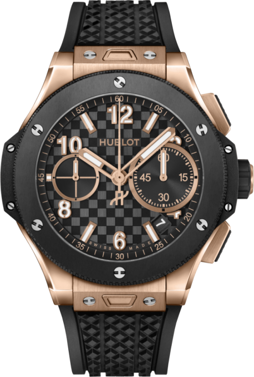| Дополнение | Хронограф. Калибр HUB1280. Запас хода до 72 часов. Черный циферблат с тиснением Carbon Effect. Задняя крышка с сапфировым стеклом. Корпус и складная застежка из розового золота и черной керамики. |