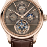 Элегантные классические мужские часы от Jaeger-LeCoultre представляют собой идеальное сочетание гармоничного дизайна и совершенного технического оснащения. Они идеально подойдут уверенным в себе людям с высоким социальным статусом, которые хотят подчеркнуть свою индивидуальность и изысканный вкус. Корпус часов изготовлен из розового золота 18 карат и имеет размер 42 мм. Толщина корпуса часов составляет 13,27 мм. Механизм с автоматическим подзаводом работает от амплитуды движения руки. Эти часы с водонепроницаемостью 50 м позволят вам плавать в бассейне или принимать душ. Циферблат закрыт прозрачным антибликовым стеклом из сапфирового хрусталя высокой прочности, благодаря чему обеспечивается максимальная защита от сколов и механических повреждений. Часы укомплектованы кожаным ремешком с раскладывающейся застежкой из золота, превосходно дополняющим эксклюзивный образ модели. Турбийон. Вечный календарь. Калибр 985. Запас хода до 45 часов. Циферблат коричневый. Задняя крышка с сапфировым стеклом.Гарантия и комплектация