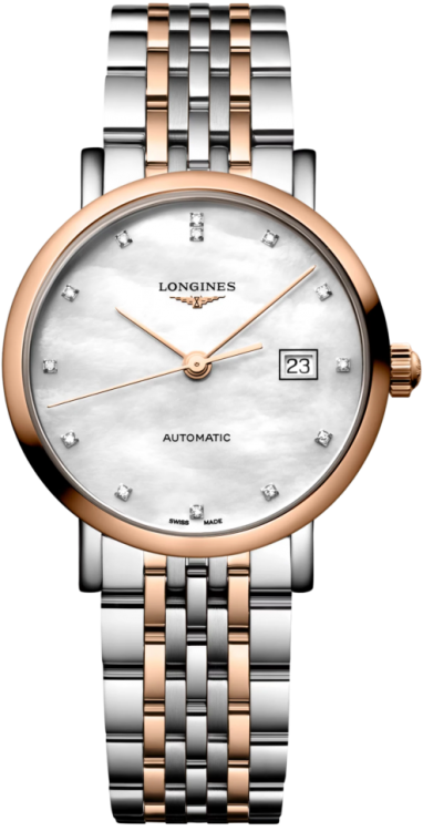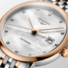 Часы классического дизайна от Longines для стильных женщин. Индивидуальность данной модели определяет статус своего обладателя и часы становятся неотъемлемой составляющей образа современного человека. Это лучший выбор для тех, кто хочет подчеркнуть свой высокий статус и неординарность. Модель поставляется в стальном со вставками из розового золота корпусе размером 29 мм. Корпус часов толщиной 8,5 мм. Механизм с автоматическим подзаводом работает от амплитуды движения руки. Часы с водонепроницаемостью 30 м перенесут небольшое случайное попадание воды. Циферблат закрыт прозрачным антибликовым стеклом из сапфирового хрусталя высокой прочности, благодаря чему обеспечивается максимальная защита от сколов и механических повреждений. Часы укомплектованы стальным браслетом с раскладывающейся застежкой из стали, превосходно дополняющим эксклюзивный образ модели. 13 бриллиантов круглой огранки общим весом 0,029 карата. Калибр L592. Запас хода до 45 часов. Циферблат из белого перламутра. Задняя крышка с сапфировым стеклом.Гарантия и комплектация