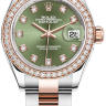 Удобные и, в то же время, стильные часы для женщин. Популярность классических решений в часовой индустрии обусловлена универсальностью линии Datejust от Rolex, простотой и представительностью данного стиля. Инкрустация бриллиантами превращает элегантные часы в изысканное украшение. Корпус часов изготовлен из нержавеющей стали и розового золота и имеет размер 28 мм. Механизм с автоматическим подзаводом работает от амплитуды движения руки. Часы предназначены для того, чтобы в них плавали и имеют водонепроницаемость 100 м. Циферблат закрыт прозрачным антибликовым стеклом из сапфирового хрусталя высокой прочности, благодаря чему обеспечивается максимальная защита от сколов и механических повреждений. Модель поставляется на стальном браслете с застежкой. 56 бриллиантов. Калибр 2236. Запас хода до 55 часов. Циферблат оливковый.Гарантия и комплектация